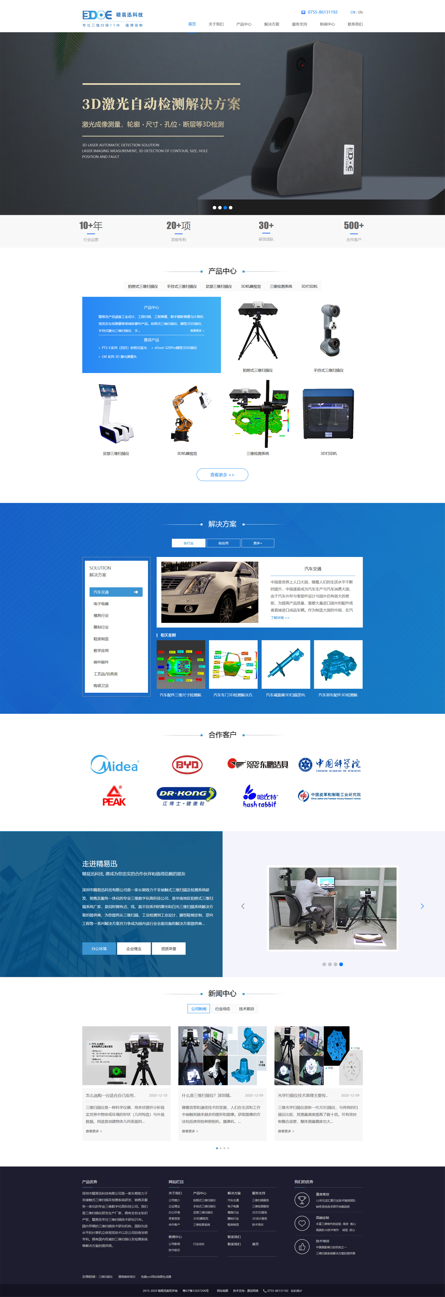 結(jié)合精易迅的logo元素及三維檢測行業(yè)的科技屬性,將網(wǎng)站主色調(diào)定位藍色,以黑白灰作為輔助色,使網(wǎng)站整體保持著簡潔明了的科技理念