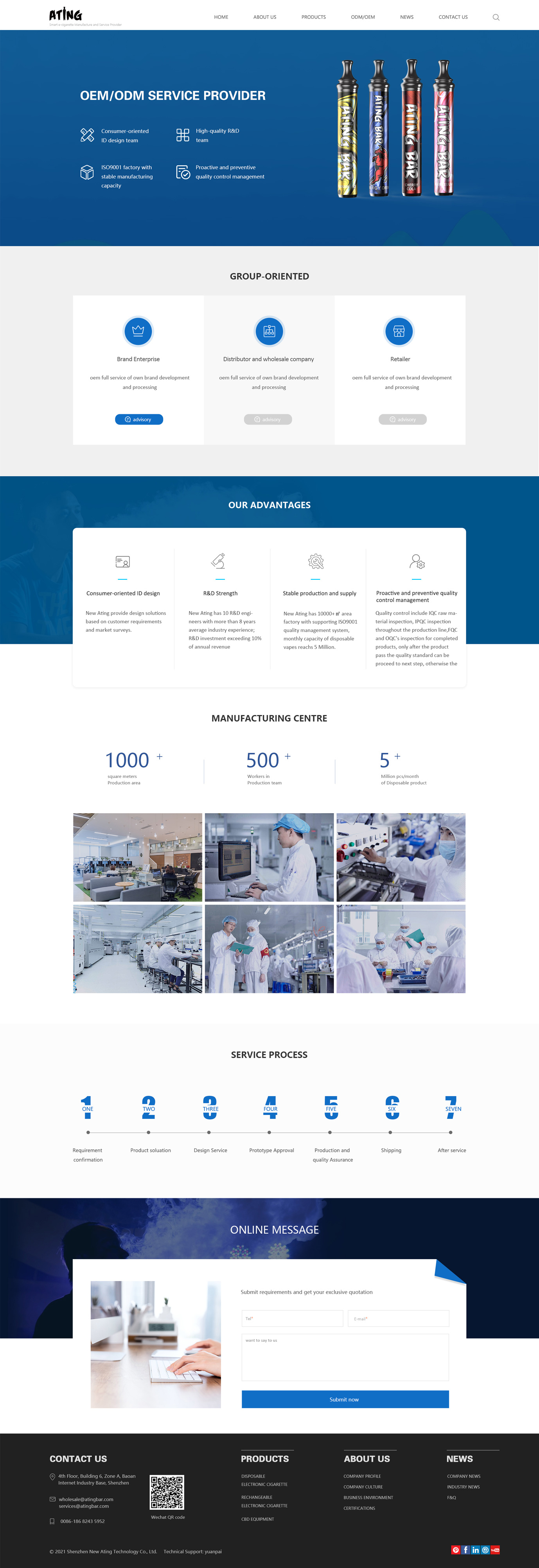 項(xiàng)目背景深圳新亞丁科技有限公司是一家提供OEM服務(wù)模式的電子煙生產(chǎn)廠家,市場(chǎng)以歐美為主。結(jié)合新亞丁的業(yè)務(wù)模式網(wǎng)站建設(shè)定位是以營(yíng)銷(xiāo)為導(dǎo)向的外貿(mào)官網(wǎng)。凸顯新亞丁的研發(fā)生產(chǎn)能力及專(zhuān)業(yè)化的服務(wù)流程,建立用戶信任基礎(chǔ),為線下?tīng)I(yíng)銷(xiāo)提供有效背書(shū)。