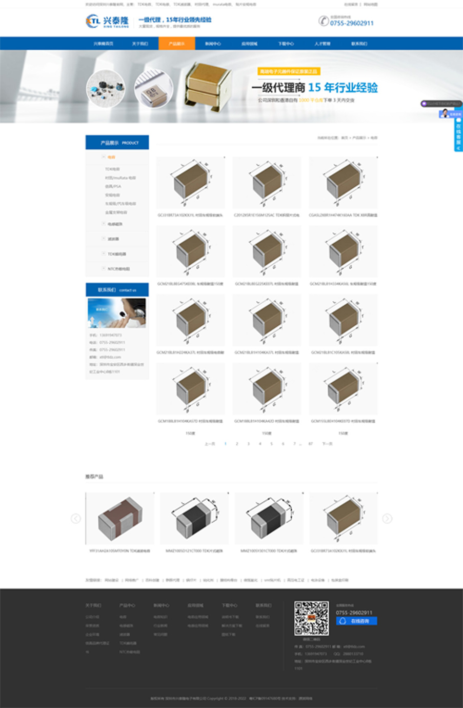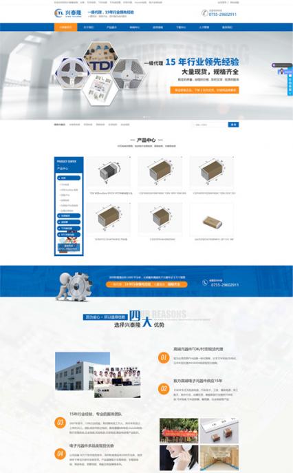 結合興泰隆電子的品牌元素,圍繞電子元器件網(wǎng)站制作特征采用科技藍作為主色調(diào),橙色為輔助色,版面主要以藍橙色調(diào)相結合的展現(xiàn)方式,即增加網(wǎng)站視覺活躍度,又符合電子元器件網(wǎng)站建設風格