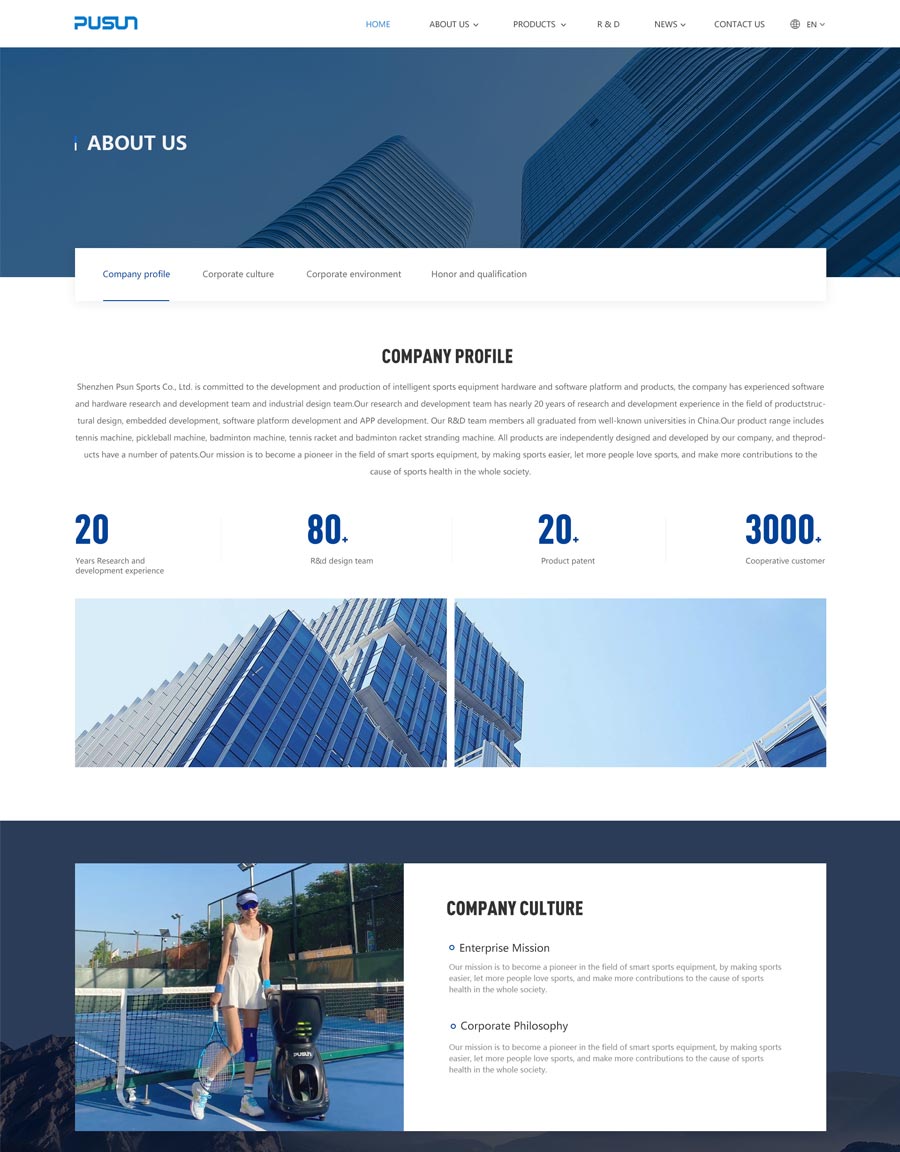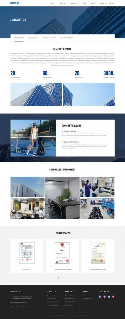 基于體育設備網站設計的行業(yè)調性,采用科技藍為主題色,黃色為輔助色,黑白灰為整站的顏色風格調性,整站的顏色搭配風格給人高端大氣的感覺,視覺呈現也非常醒目,非常符合體育設備網站設計行業(yè)的風格屬性。