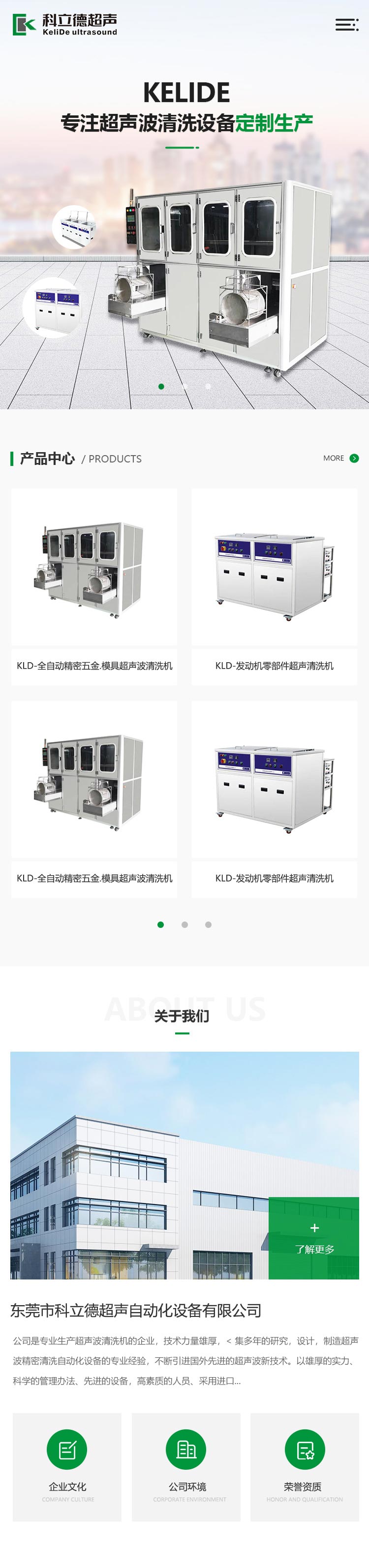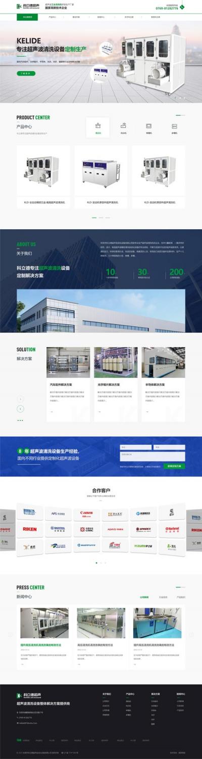 基于東莞科立德的品牌元素和產(chǎn)品屬性,采用環(huán)保綠作為網(wǎng)站主題色藍(lán)色為輔助色,既體現(xiàn)了企業(yè)產(chǎn)品環(huán)保理念網(wǎng)站整體風(fēng)格也更靈動,也更貼切超聲波清洗設(shè)備網(wǎng)站建設(shè)行業(yè)風(fēng)格屬性。