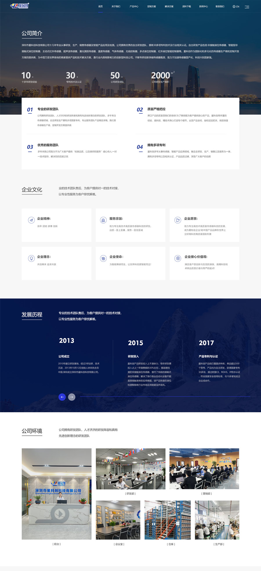 基于星科創(chuàng)科技企業(yè)品牌屬性及產(chǎn)品特性采用科技藍為網(wǎng)站色調(diào),其它色為輔助色,既增加了產(chǎn)品靈活度也符合傳感器網(wǎng)站建設品牌特性,整站細節(jié)滿滿大氣厚重且不失視覺沖擊力。