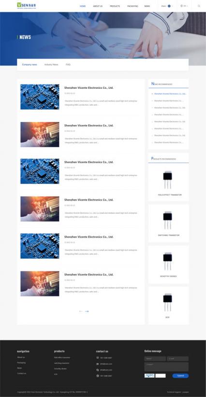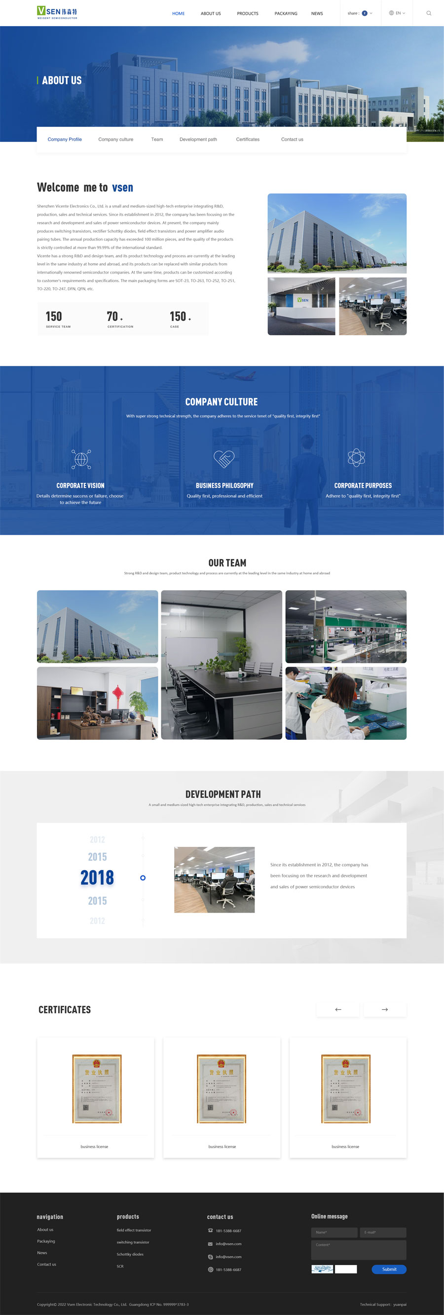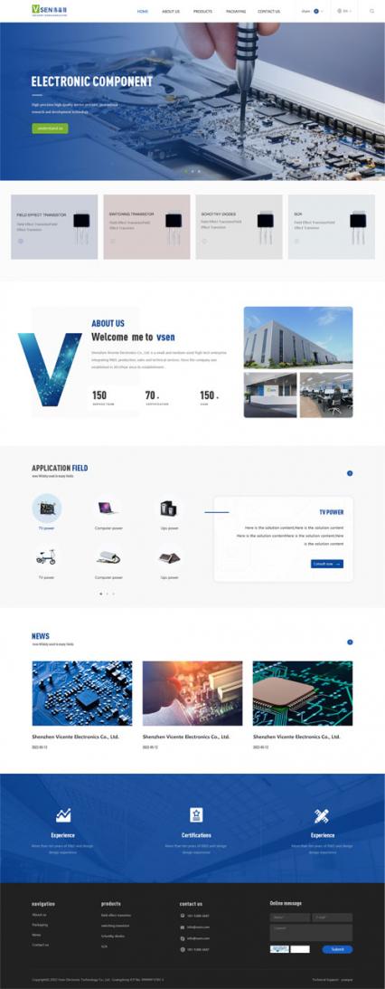 項(xiàng)目背景偉森特一家集研發(fā)、生產(chǎn)、銷售、技術(shù)服務(wù)為一體的中小型高科技企業(yè),2012年成立,專注于功率半導(dǎo)體器件的研發(fā)和銷售。基于開展外貿(mào)業(yè)務(wù)提升品牌形象的建站目標(biāo),圍繞電子元器件網(wǎng)站建設(shè)設(shè)計(jì)風(fēng)格開展整站的策劃設(shè)計(jì)。