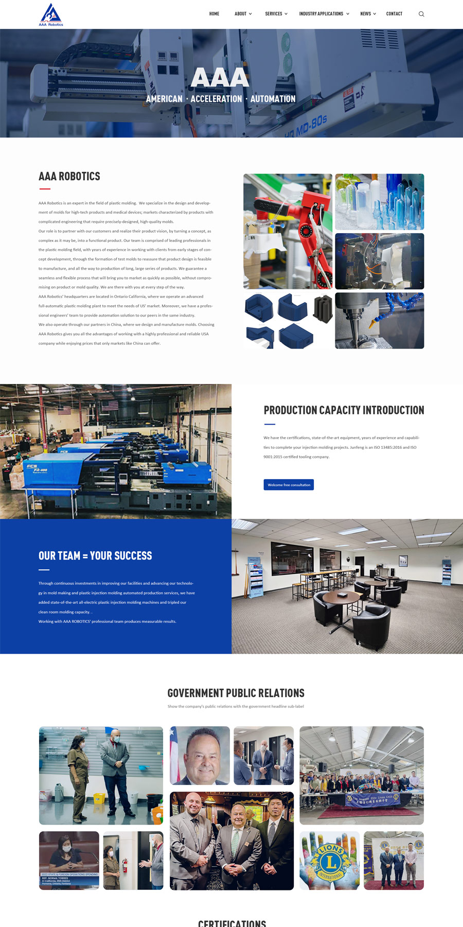 基于駿豐模具品牌元素及產(chǎn)品屬性采用科技藍為主色調(diào),在網(wǎng)站顏色上大面積整體色調(diào)采用了藍色調(diào),再用紅色調(diào)加以點綴,不僅讓網(wǎng)站視覺上更美觀大氣,且網(wǎng)站也不會顯得太過單調(diào)。