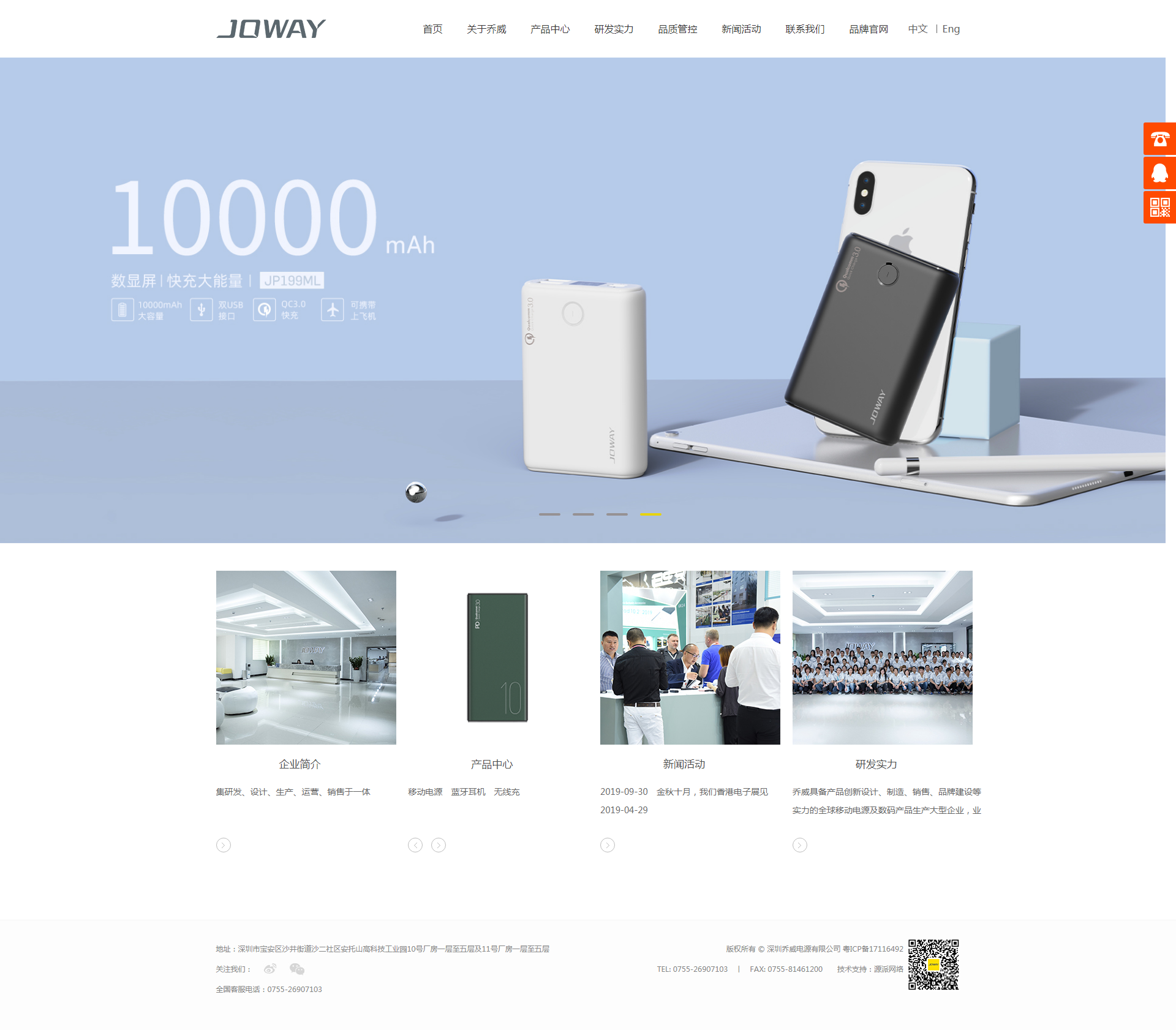 項(xiàng)目背景深圳市喬威電源有限公司以匠工精神及技術(shù)實(shí)力出移動(dòng)電源、藍(lán)牙耳機(jī)、藍(lán)牙音響、電源適配器等數(shù)碼3C產(chǎn)品現(xiàn)擁有一千多名員工 。網(wǎng)站定位以塑造企業(yè)形象及產(chǎn)品宣導(dǎo)為導(dǎo)向。