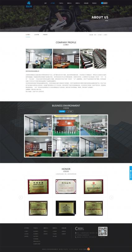 根據(jù)公司所在行業(yè),采用電子科技藍為主色調,大塊色調采用的是黑灰色為主,凸顯網(wǎng)站的質感及神秘感,采用主色調藍色為點綴,起到畫龍點睛的作用。