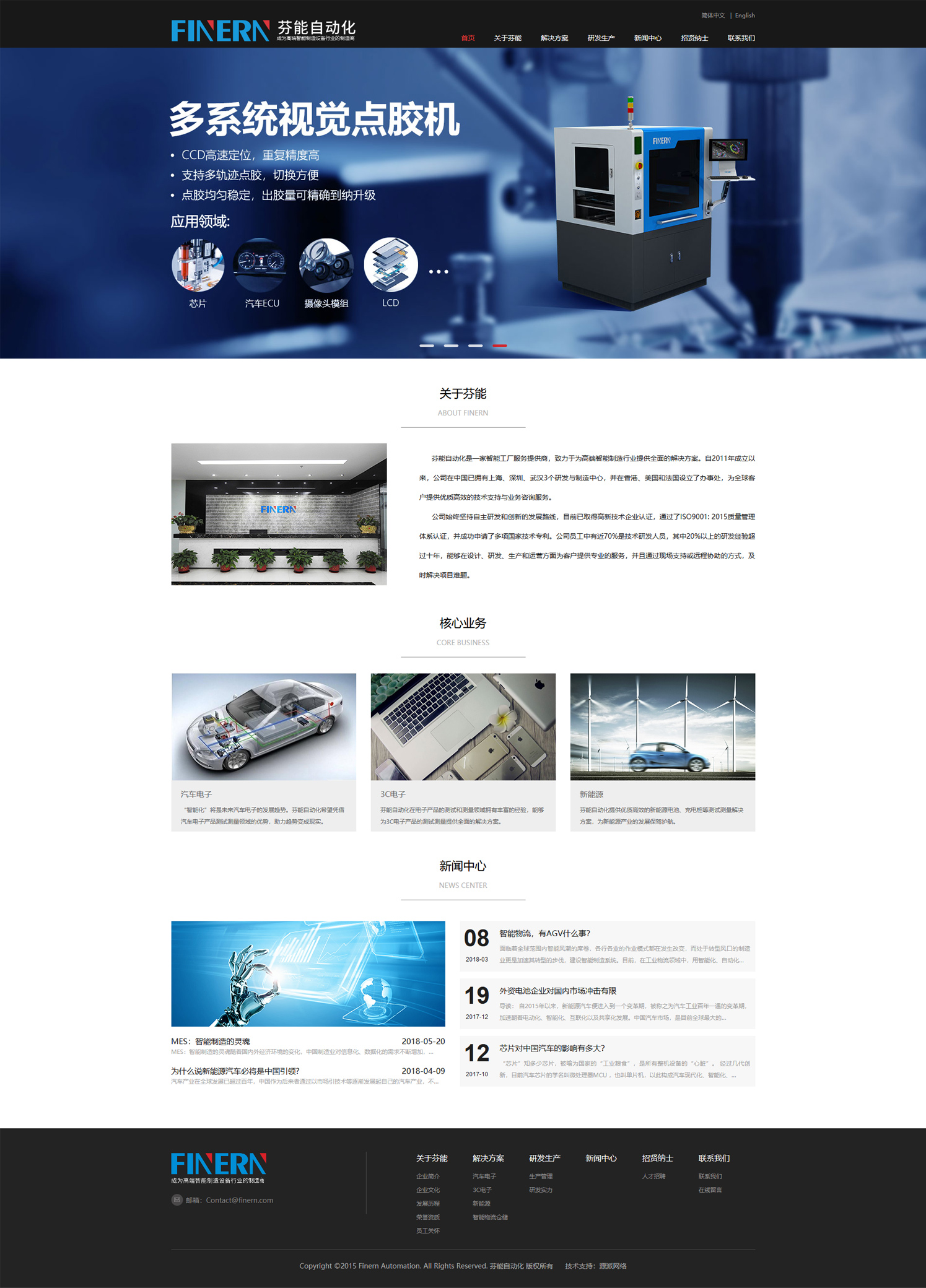網(wǎng)站建設(shè)整體風(fēng)格圍繞芬能自動化的品牌logo元素采用了藍(lán)色系作為網(wǎng)站設(shè)計(jì)的主色調(diào),使網(wǎng)站建設(shè)風(fēng)格整體保持著環(huán)保智能的科技屬性。