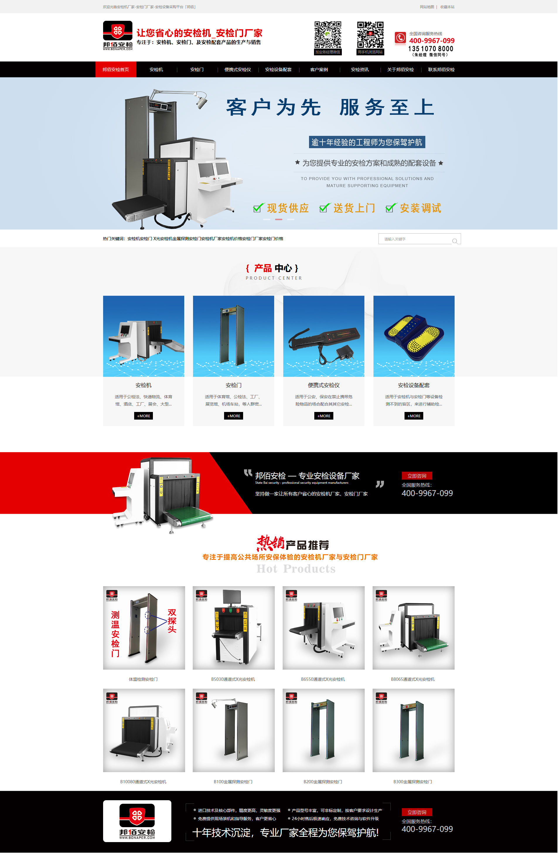 結(jié)合邦佰安檢的logo元素及安檢設(shè)備行業(yè)的屬性,將網(wǎng)站主色調(diào)定位紅色,將黑白色作為輔助色,使網(wǎng)站整體保持著清簡潔明了的風格走向
